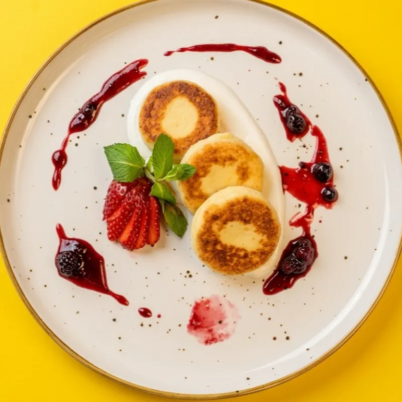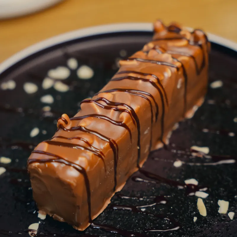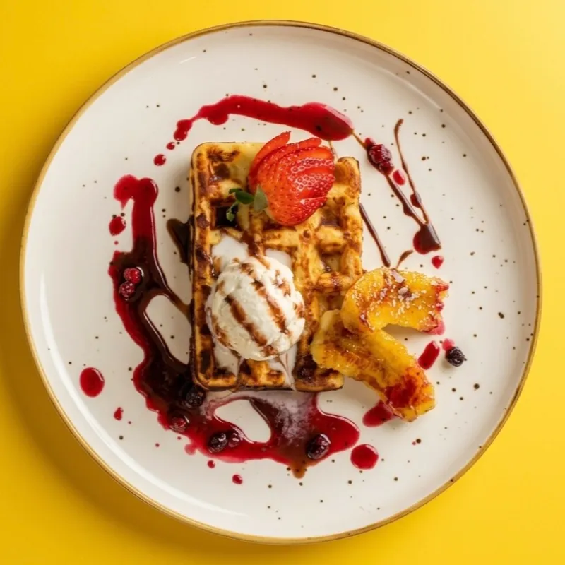 творожный вафли с карамелизированным бананом шоколадным сироп