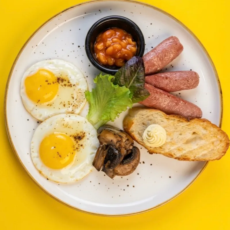 яйцо,сосиски,багет,грибы,фасоль, сливочное масло