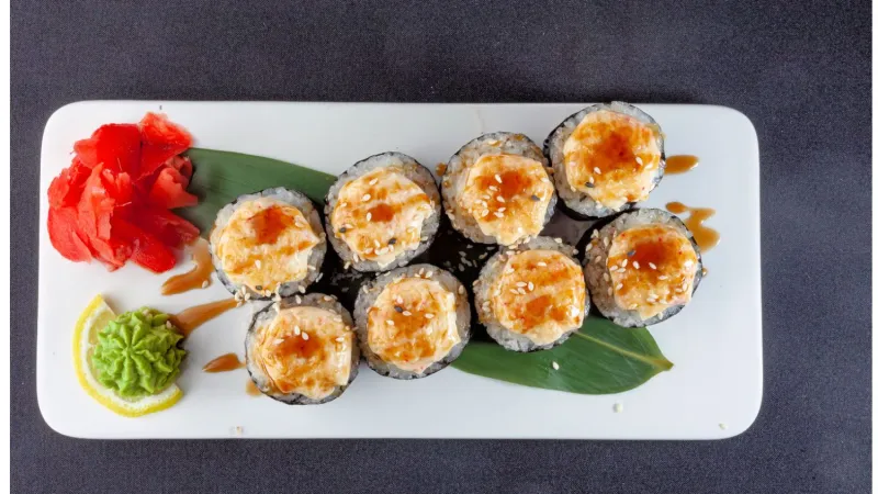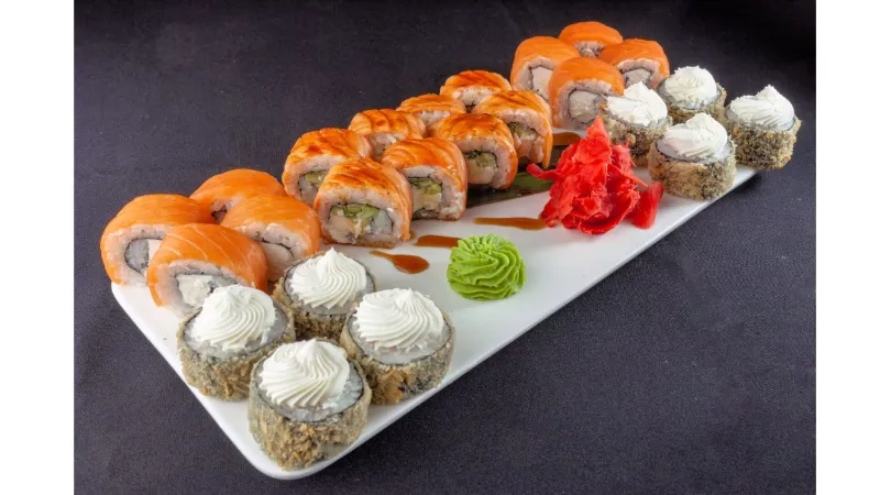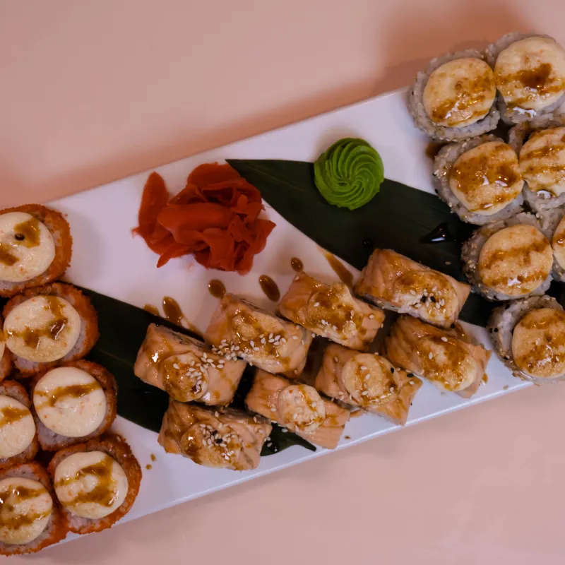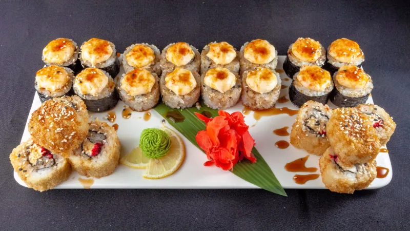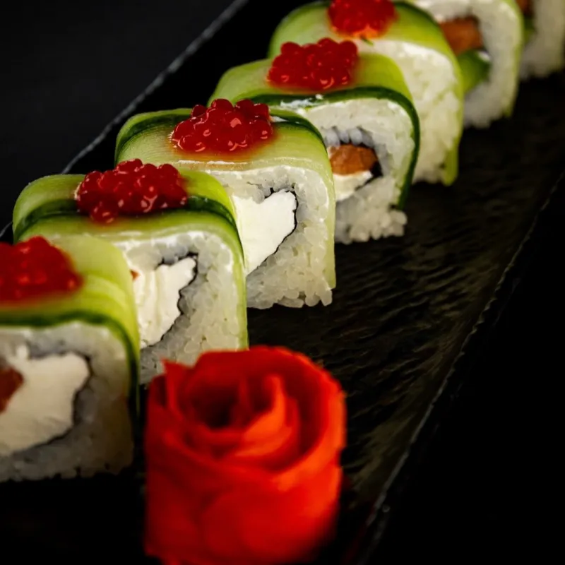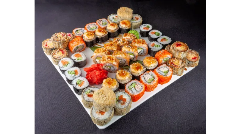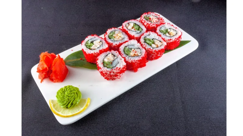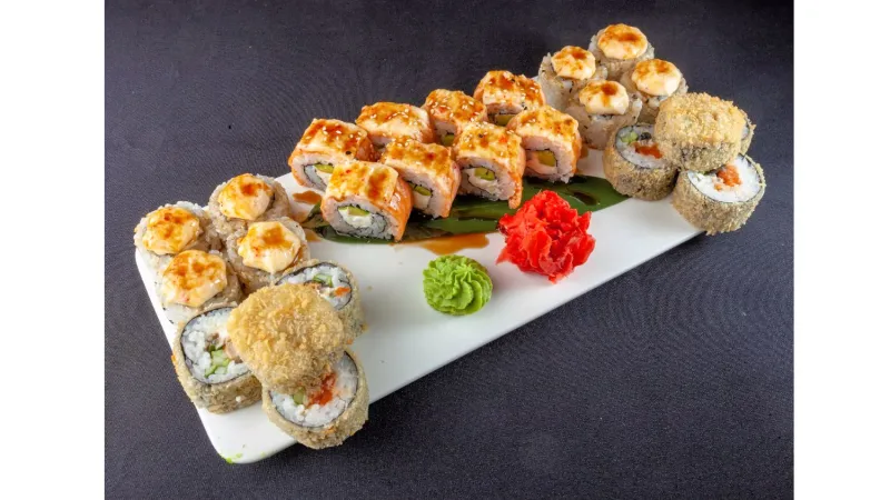 Поцелуй гейши, Вулкан маки, Саке маки, Калифорния с крабом, Хот ролл, Хоккайдо маки