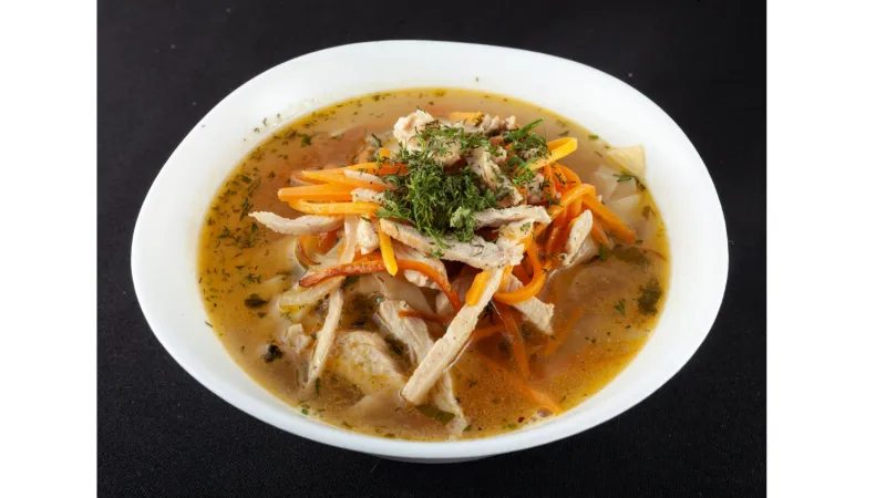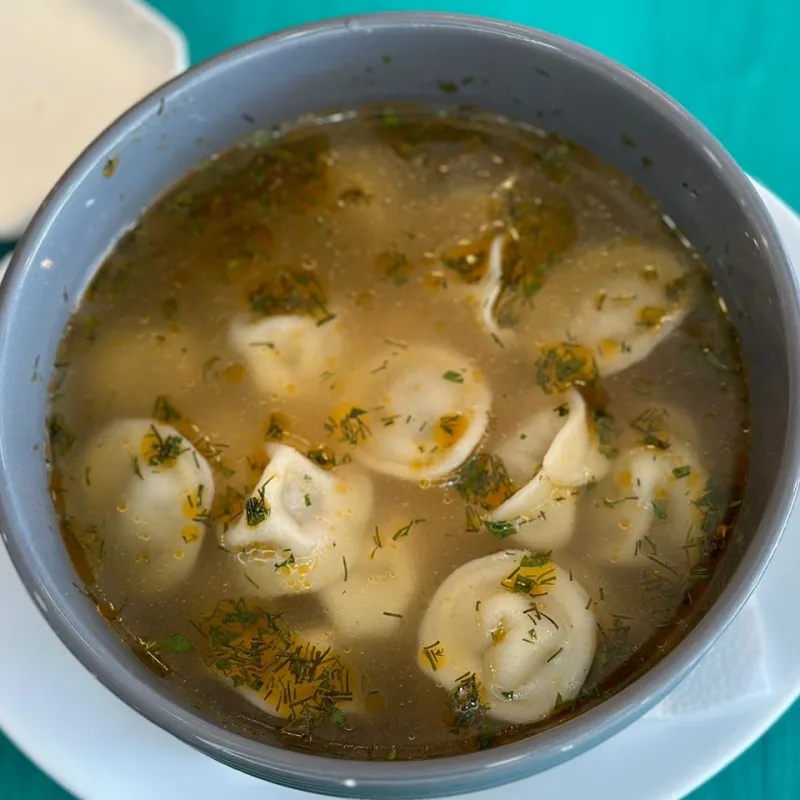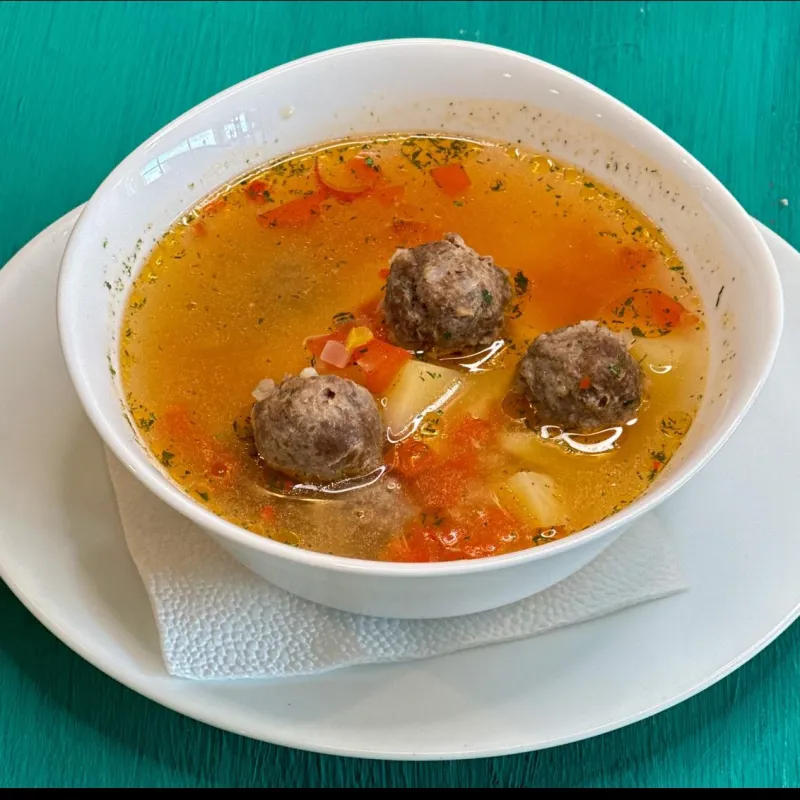 Наваристый говяжий бульон с фрикадельками и картошечкой