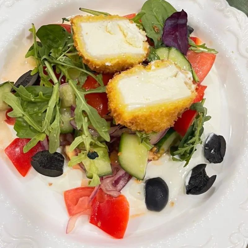 Огурцы, помидор,болгарский перец,оливки,красный лук,микс салаты,греческий йогурт,бринза