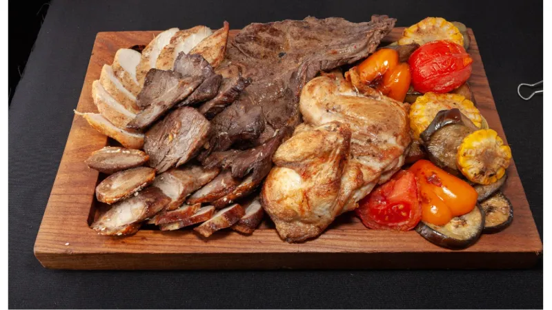 Ти-бон стейк, говяжья вырезка, цыпленок, куриная грудка, утиное филе на гриле, овощи на гриле