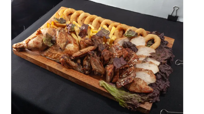Цыпленок, криная грудка, утиное филе на гриле, куриные крылышки, луковые колечки, фри, картофельные дольки