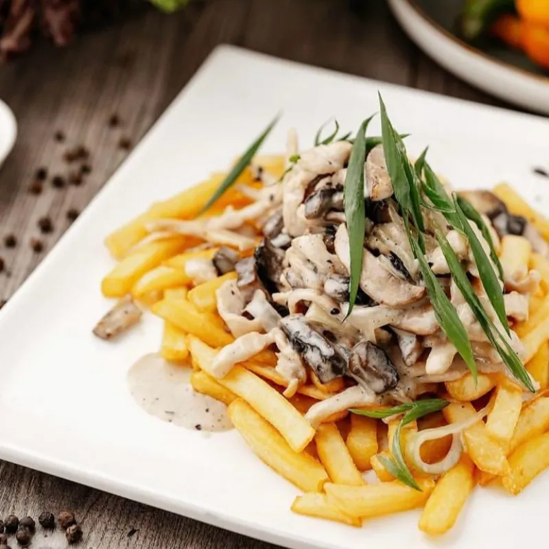 Куриное филе,фетучини ,грибы ,сыр пармезан ,черри,сливки