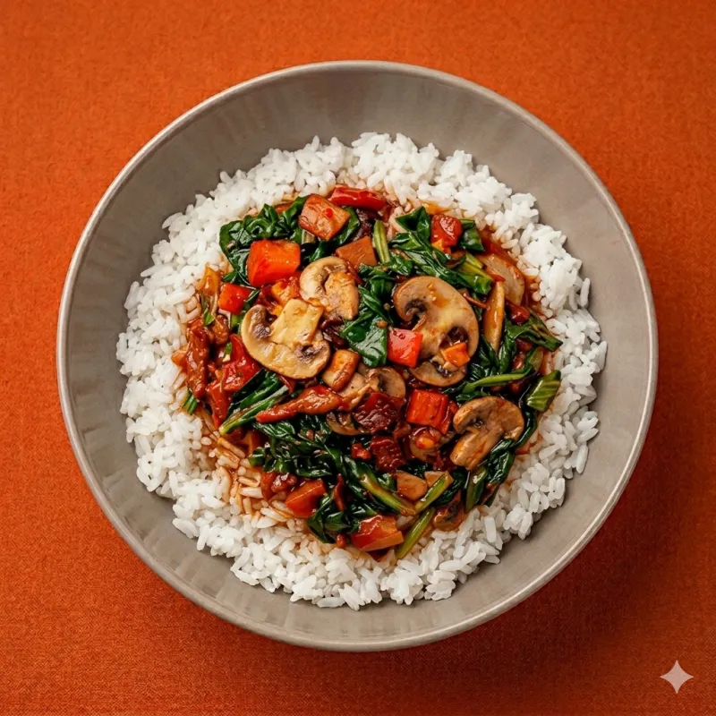 подлив с древесными грибами, говядиной и полугорьким перцем