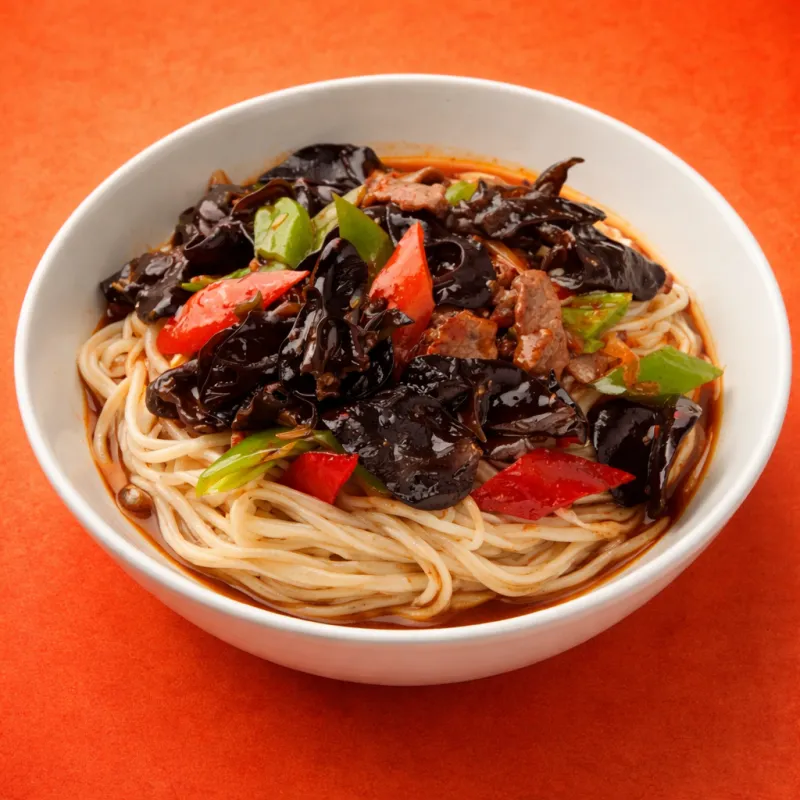 подлив с древесные грибы, говядиной и полугорьким перцем