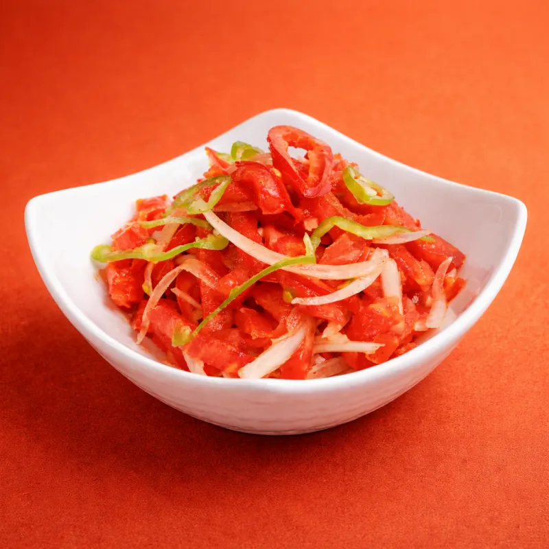 традиционный узбекский салат из тонко нарезанных помидоров и лука