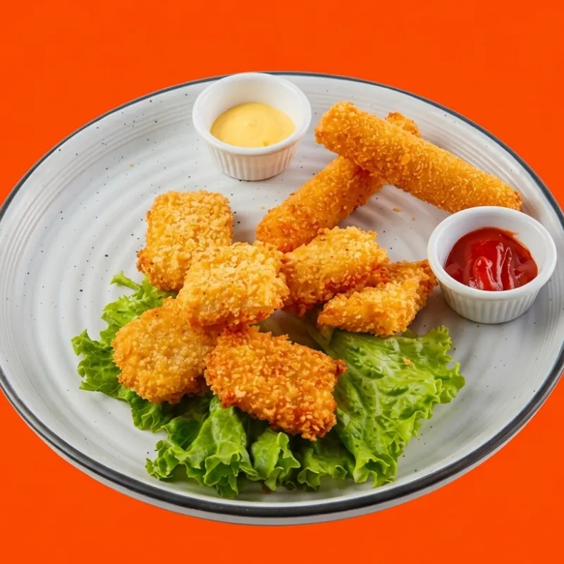 Кусочки куриного филе, прожаренные в жидком тесте во фритюре