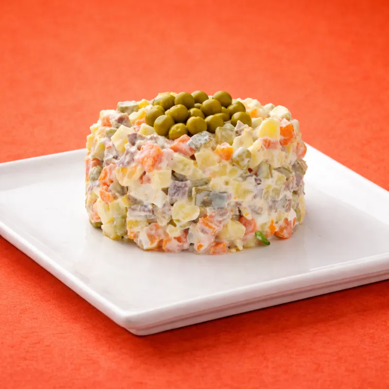 копчености с маслинами и солеными огурцами, зеленью и сметаной