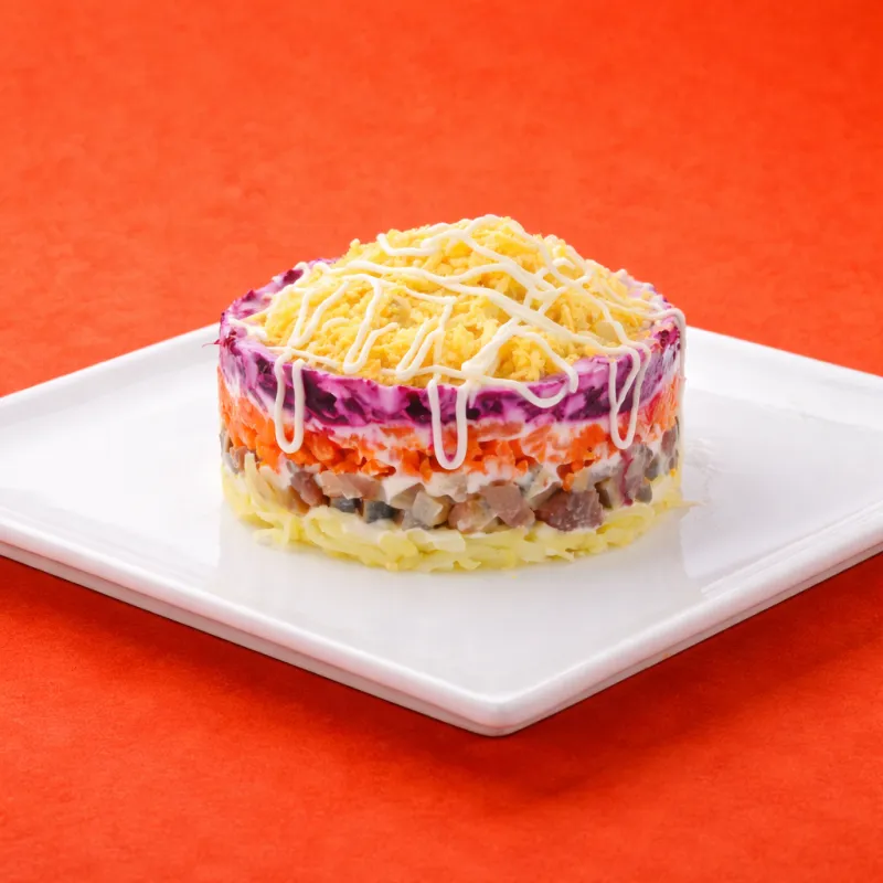 классический салат с квашеной капустой, соленьями и свеклой