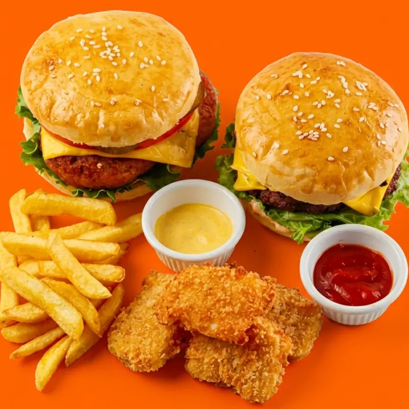 жареные кусочки куриного филе с картофелем фри