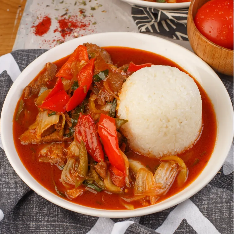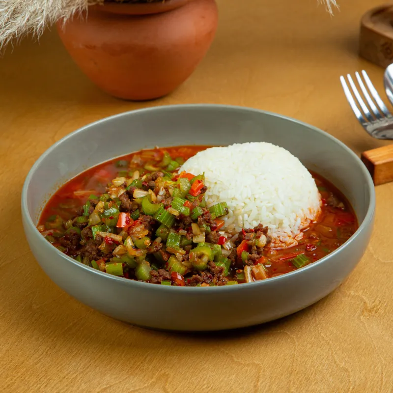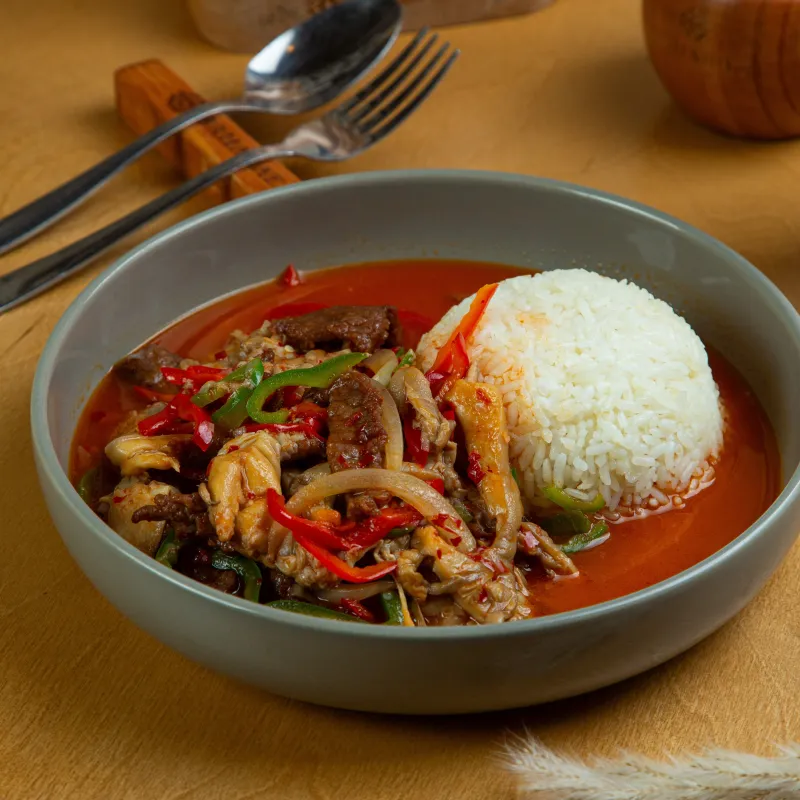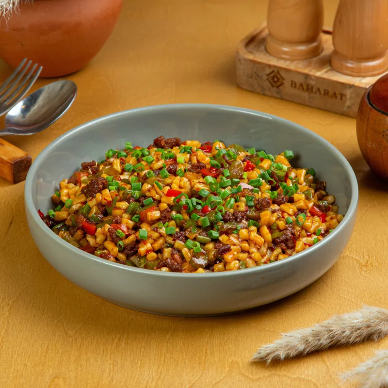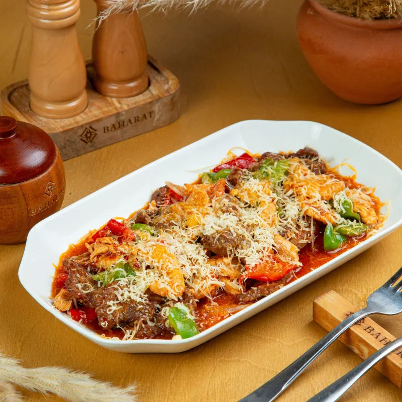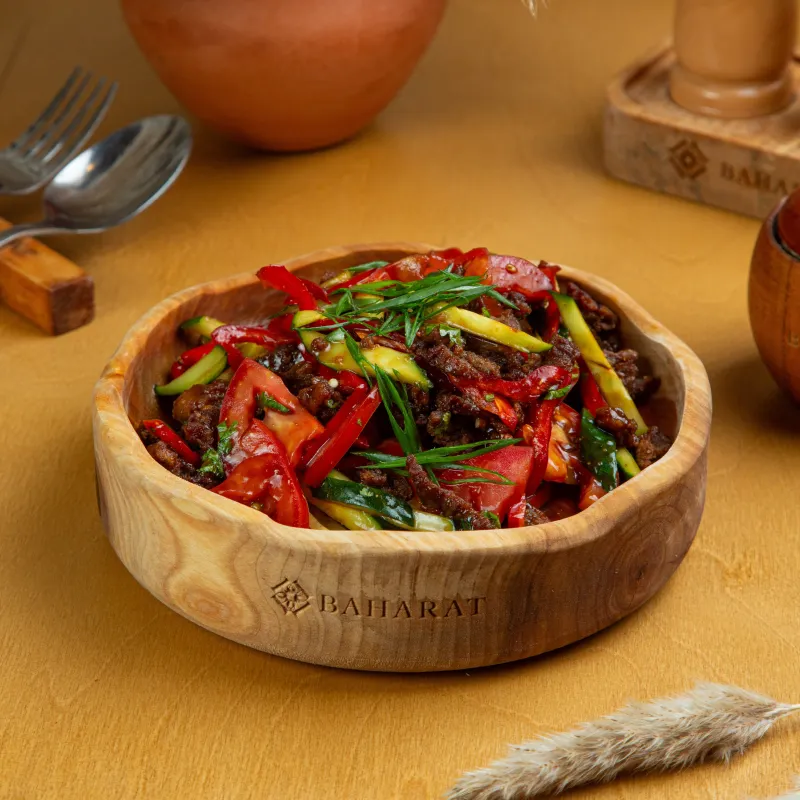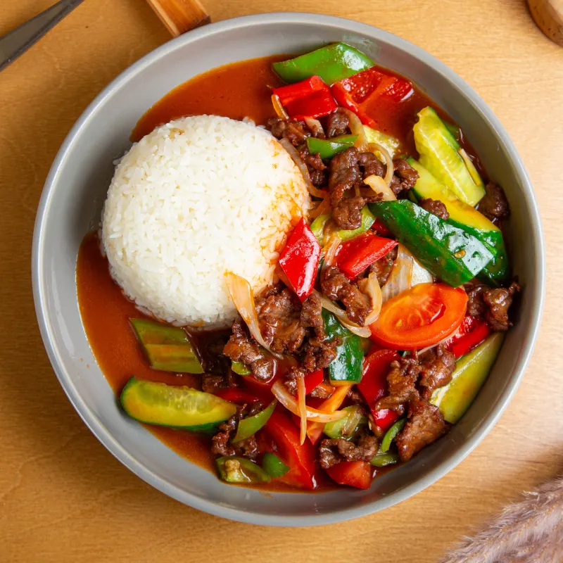 Традиционное уйгурское блюдо, сочным говяжьим мясом и мелконарезанными овощами. Обладающее богатым вкусом. Подается с рисом.