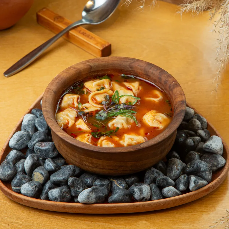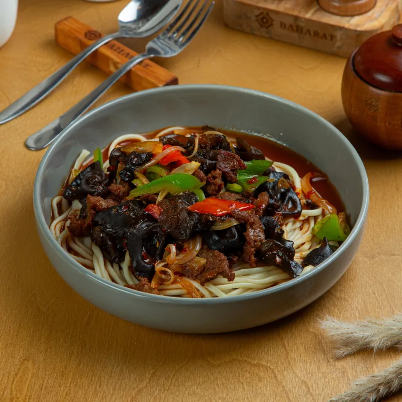 Традиционное уйгурское блюдо,сочным говяжьим мясом, ароматными овощами и с добавлением древесных грибов , обладающее богатым вкусом. Тесто лепим вручную.