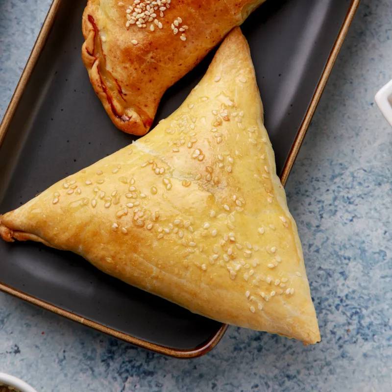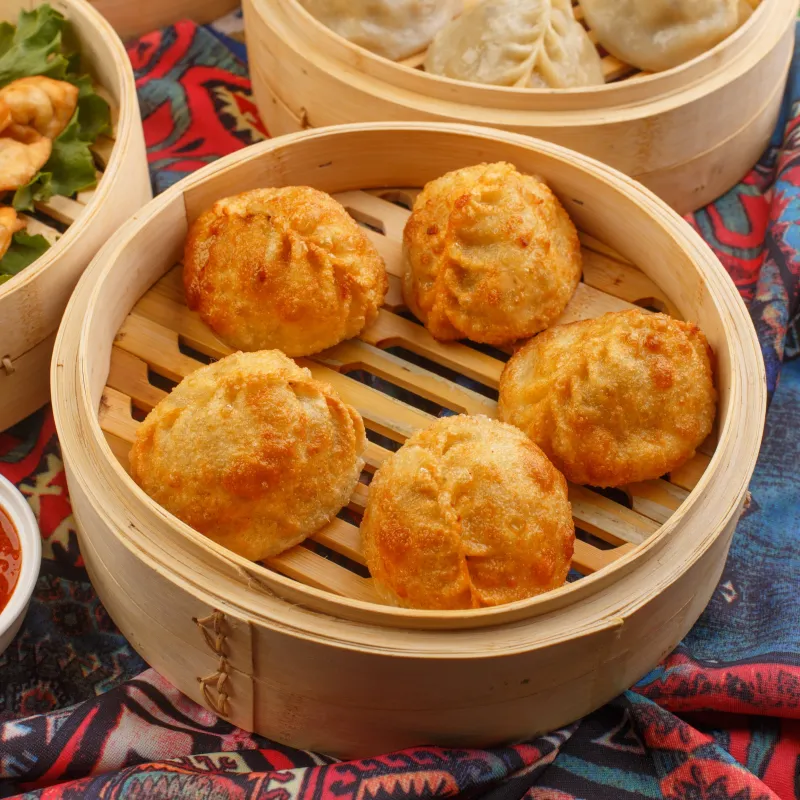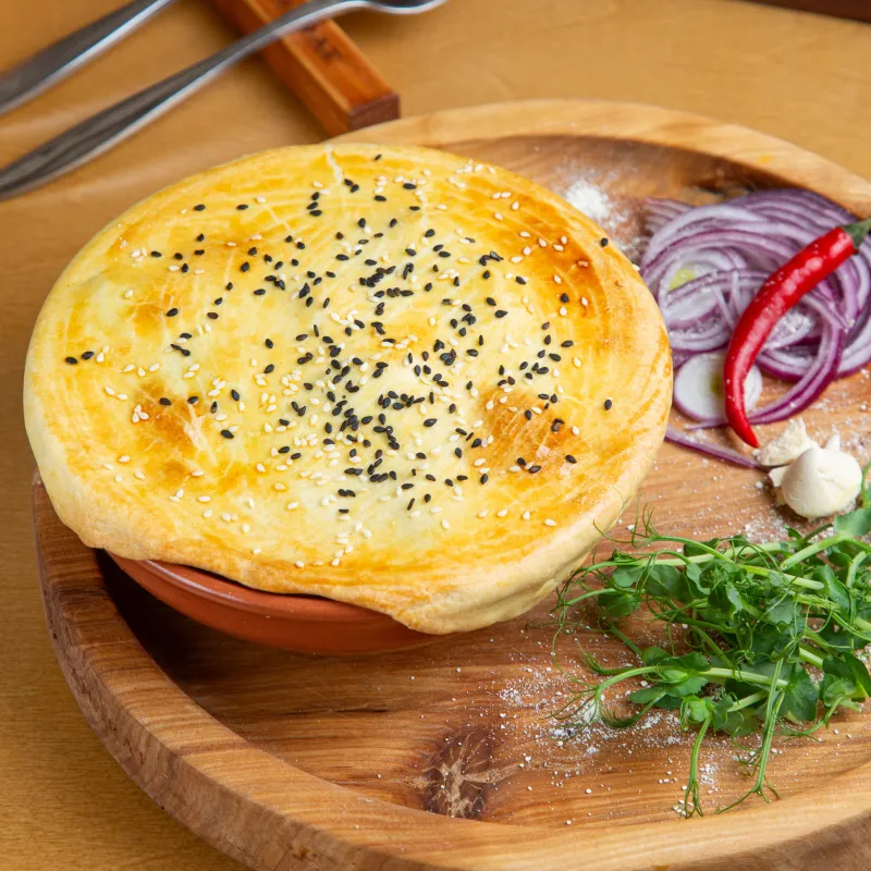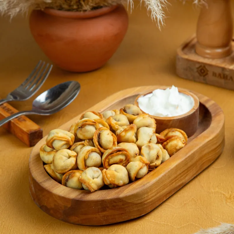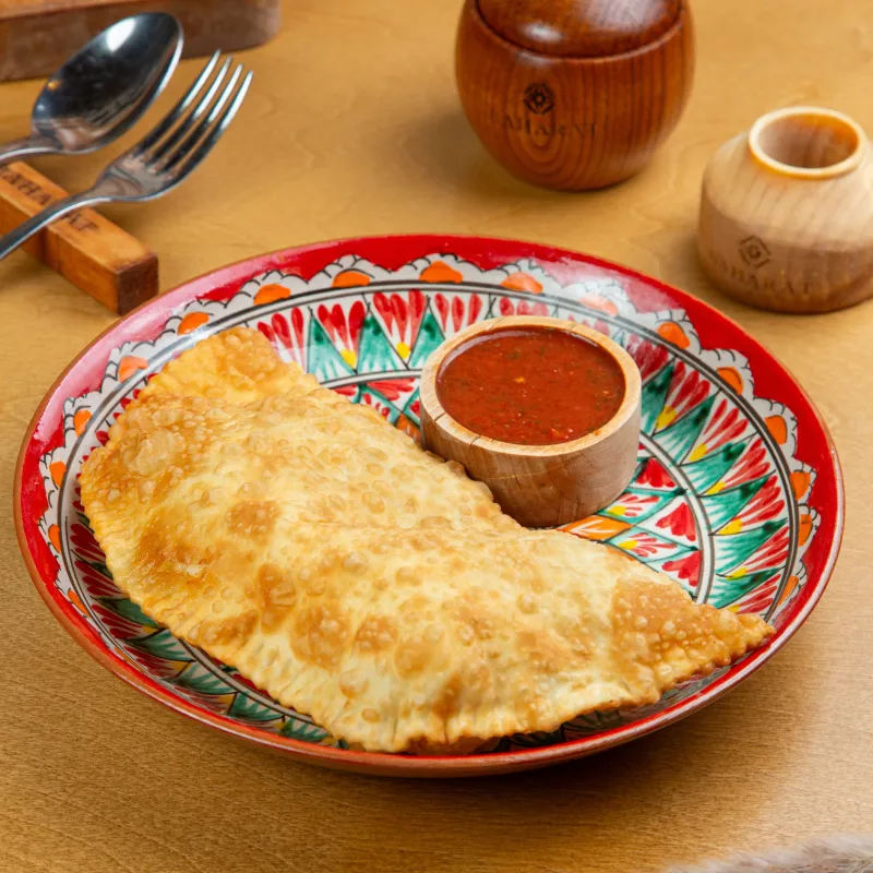 Традиционное жареное уйгурское блюдо,сочным мясом и мелкорубленными овощами, обладающее богатым вкусом. Тесто лепим вручную.