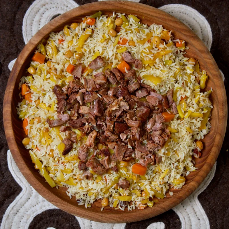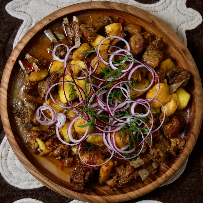 традиционное уйгурское блюдо,сочным мясом и ароматными овощами, обладающее богатым вкусом.