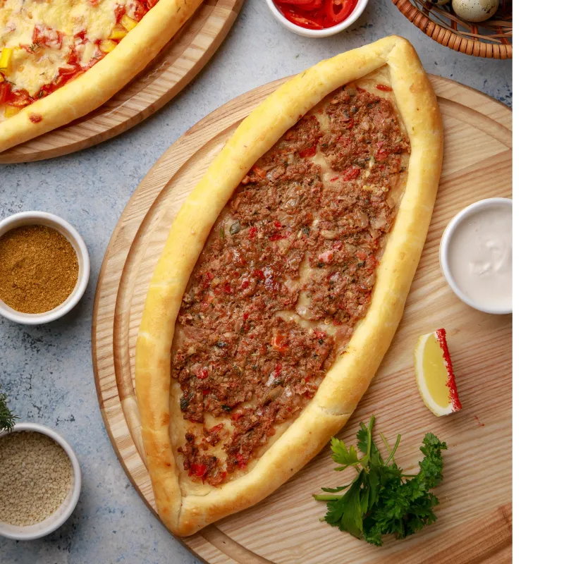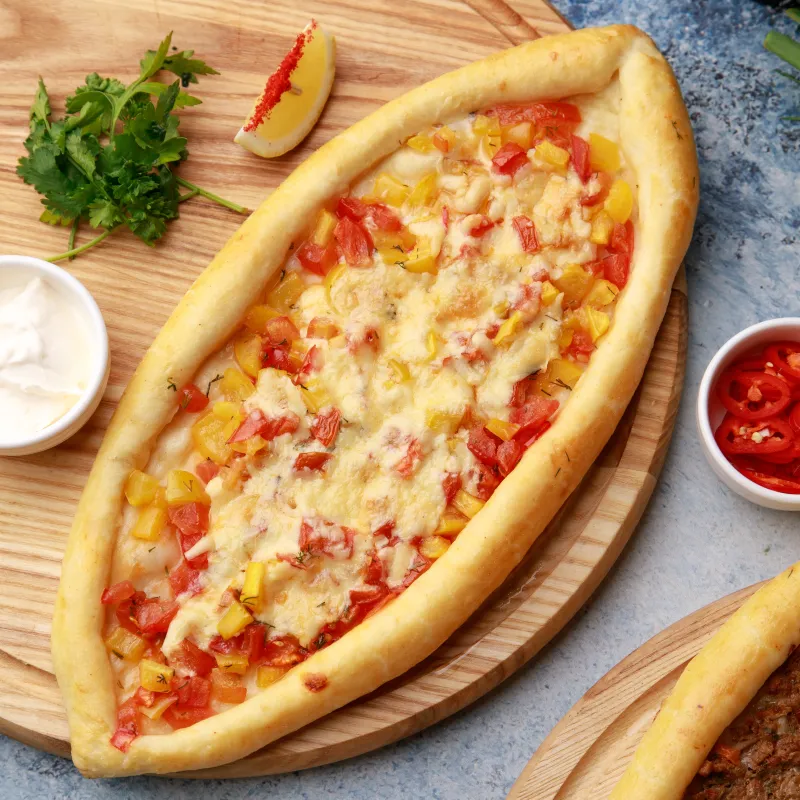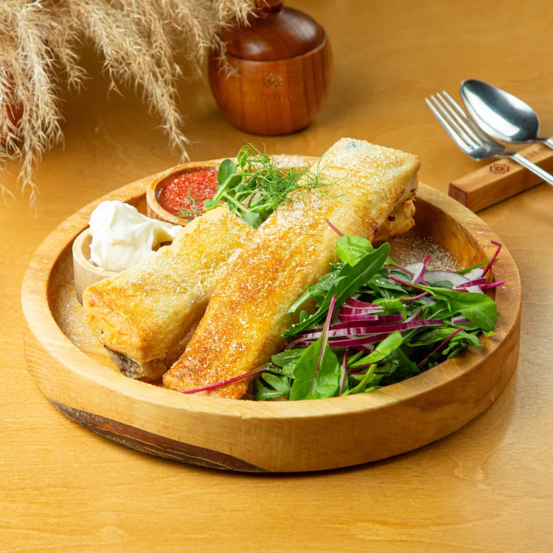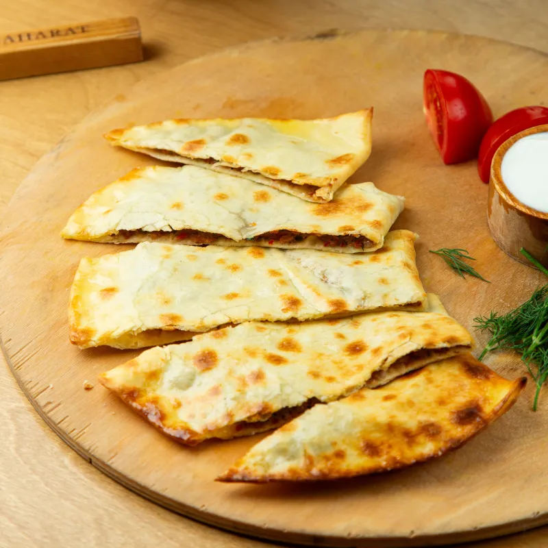 Традиционное блюдо турецкой кухни в виде лепешки с начинкой завернутой внутри.