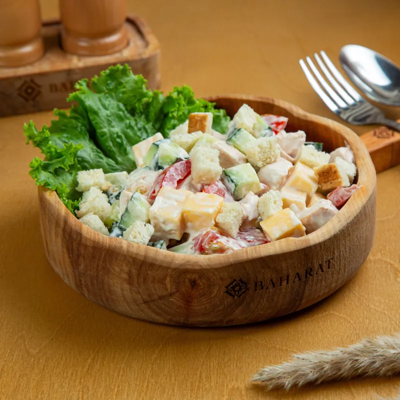 Сыр, куриное филе, огурцы, помидор, майонез, сухарики.