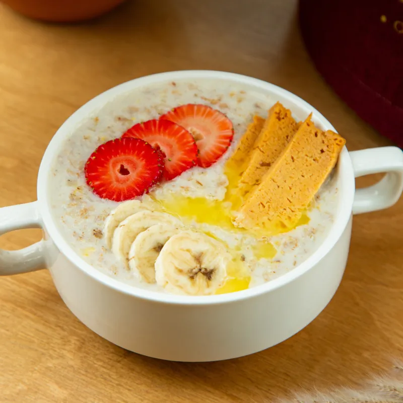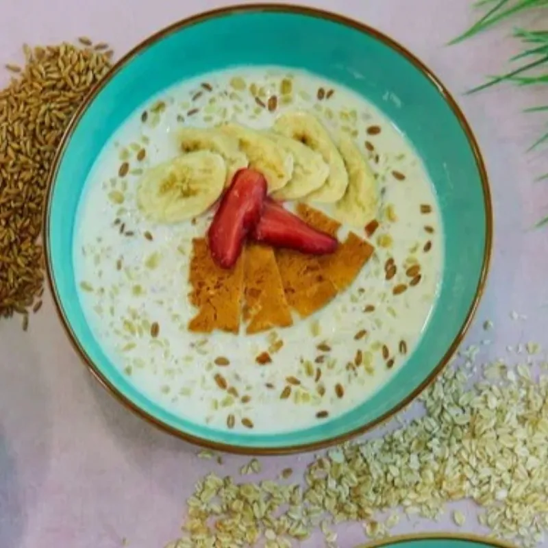 Овсяная крупа, молоко, иримшик, банан, клубника