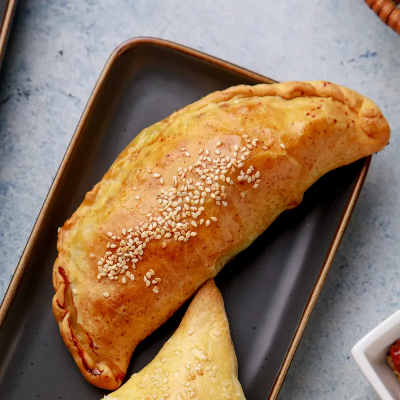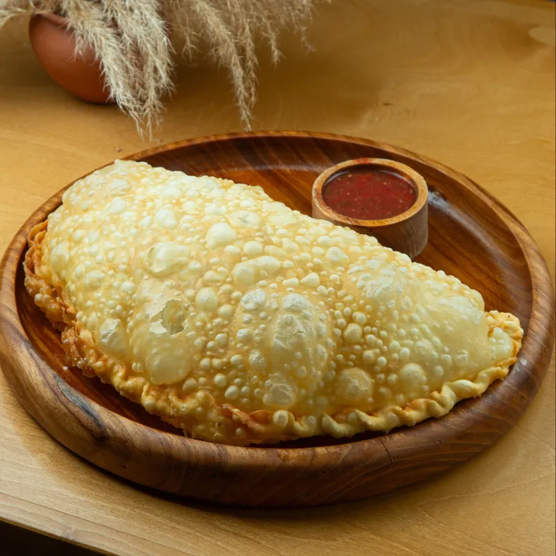 Пышный чебурек из мяса говядины, подается с восточным соусом.
