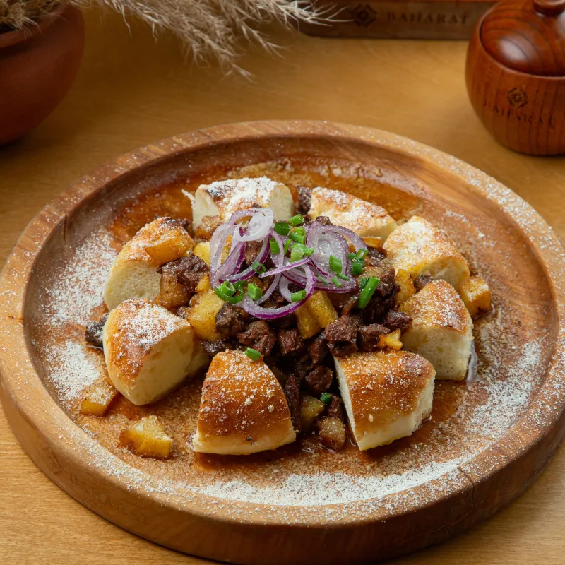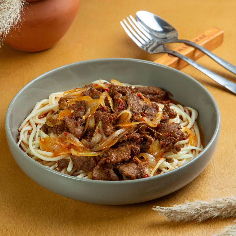 Это ароматное и сытное казахское блюдо, где нежное мясо тушится с луком и специями, создавая неповторимый вкус.