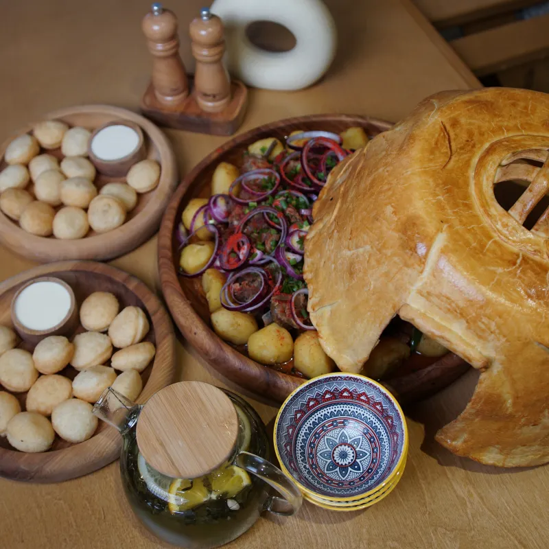 Сырне на 4-5 персон, баурсаки с балкаймаком 2 порции, ташкентский чай 2 л.