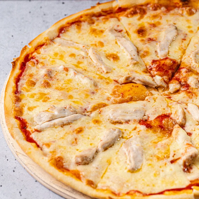 Пицца с курицей - сочное сочетание хрустящего теста и аппетитной обжаренной куриной грудки.