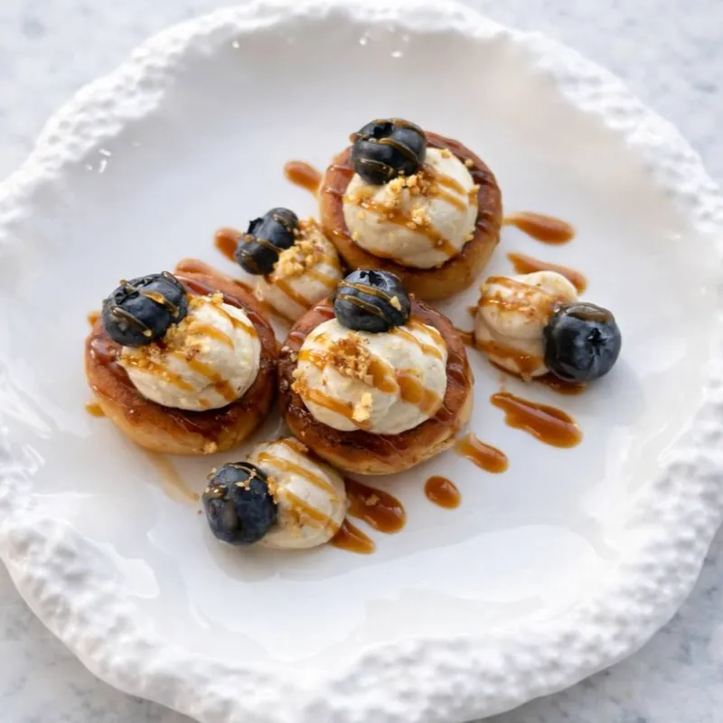 Авторские сырники с балкаймаком и талканом. Подаются с кремом из сметаны и творожного сыра, а также свежими ягодами