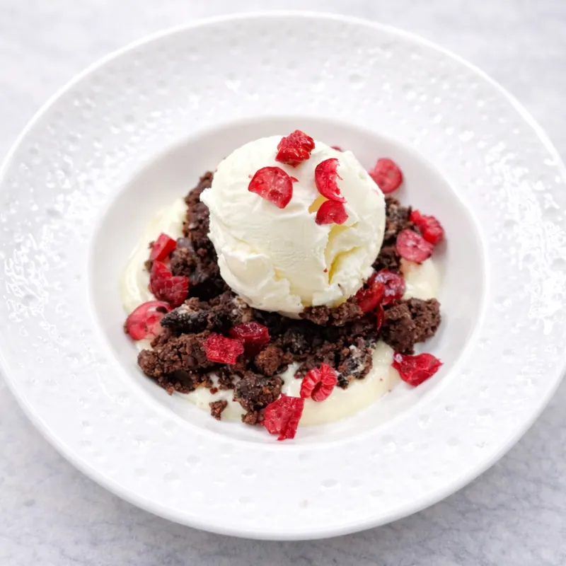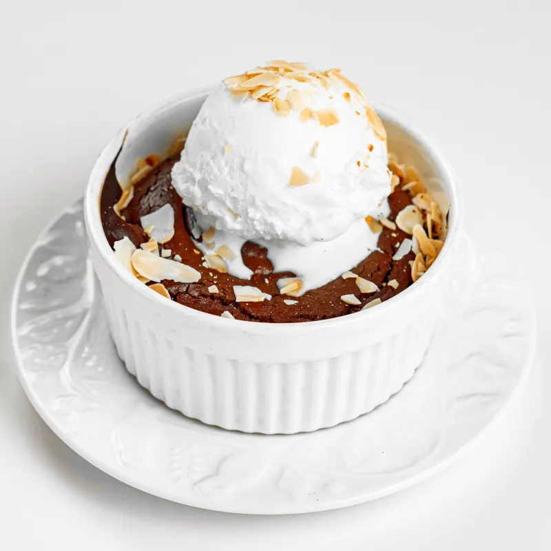 Воздушный десерт на основе бельгийского шоколада и шариком мороженого