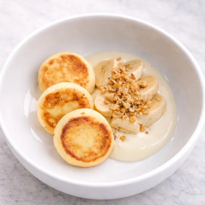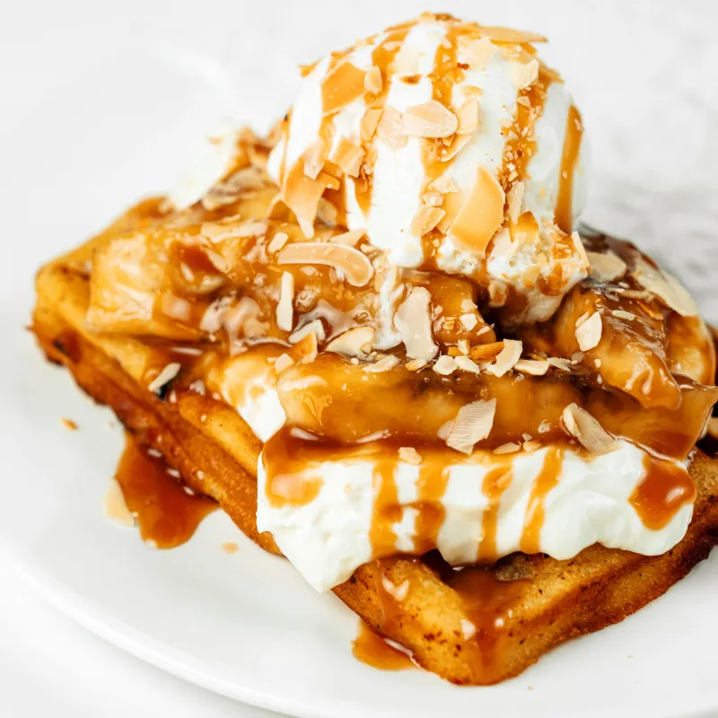С творожным сыром, карамелью, бананом и ванильным мороженым