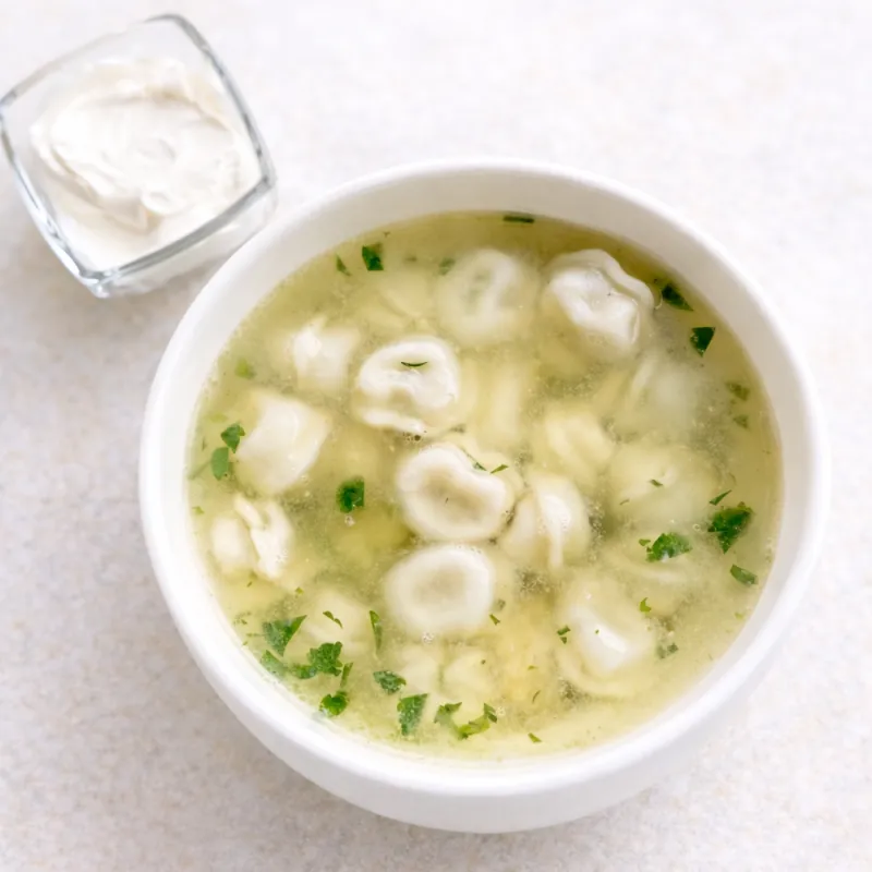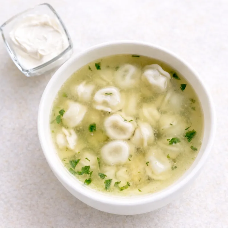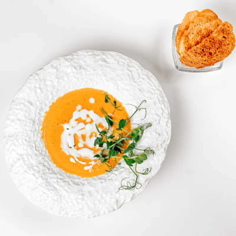 Подается с чесночными крутонами