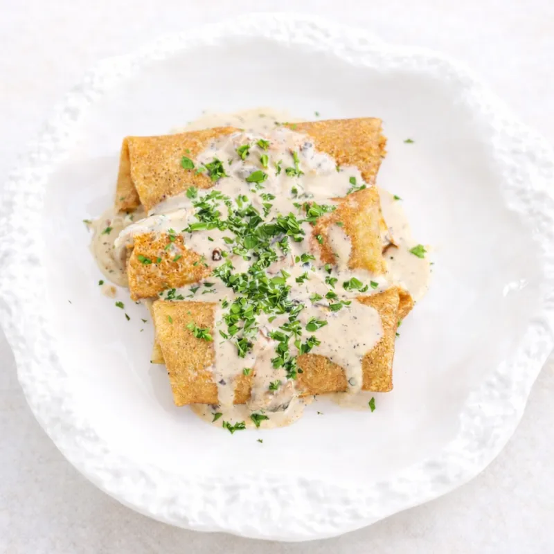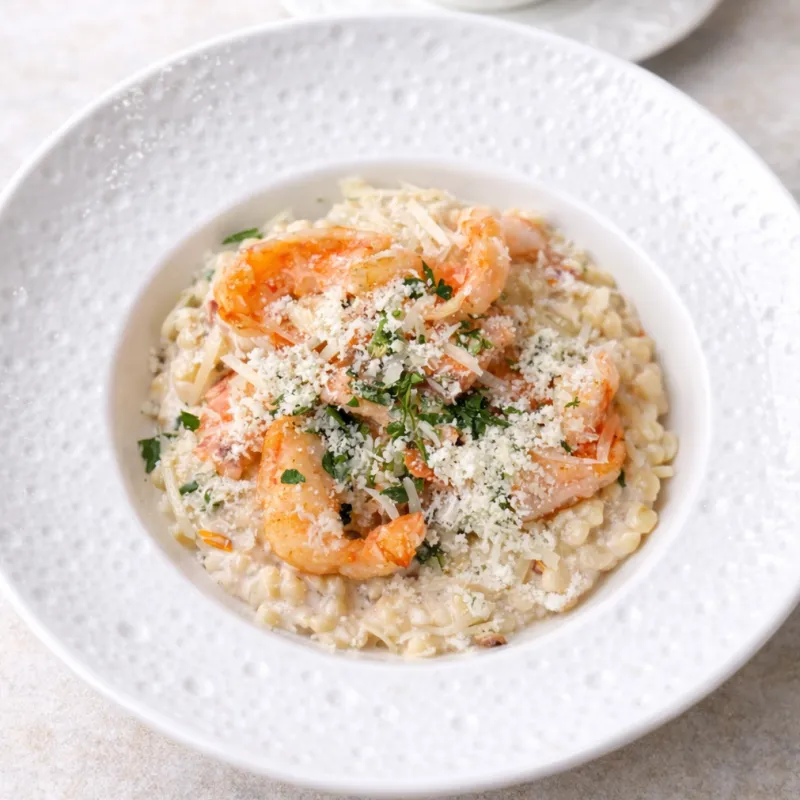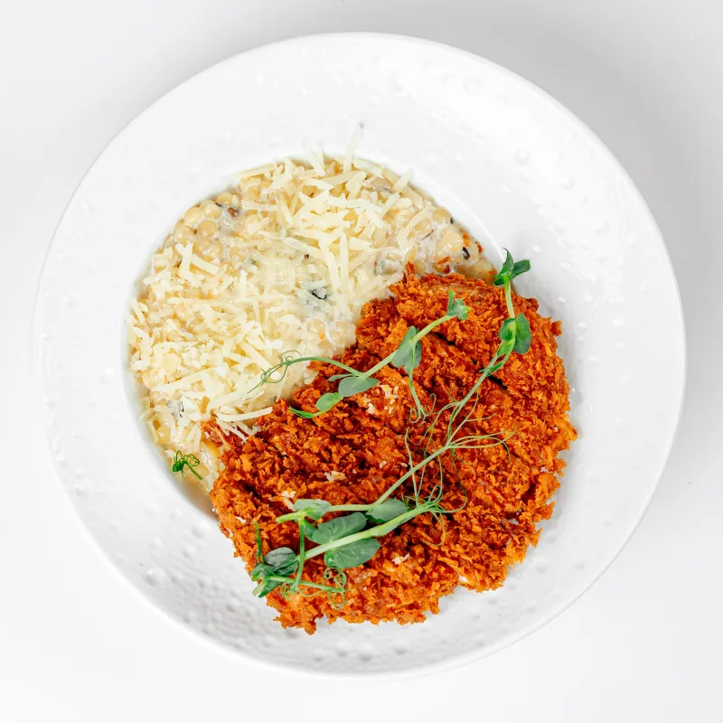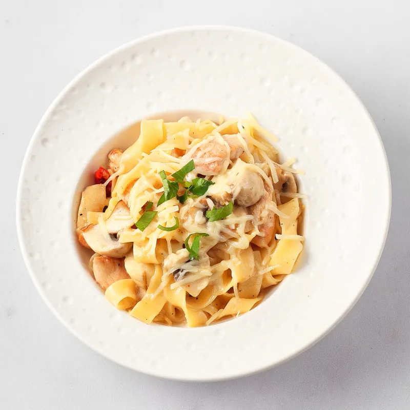 Нежная паста птитим в сливочно- грибном соусе с хрустящей курицей