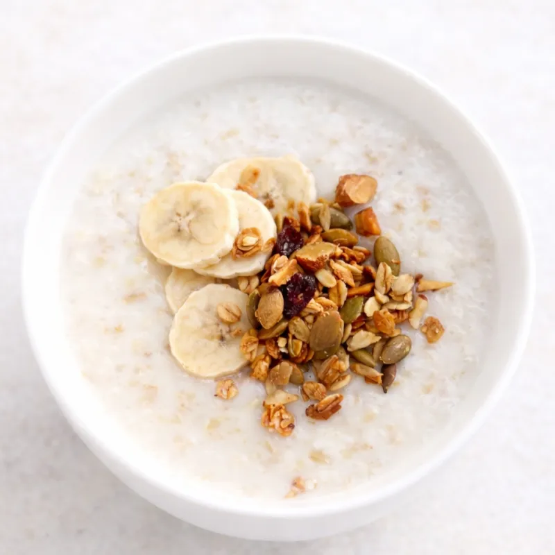 Каша овсяная/рисовая с гранолой и бананом на молоке