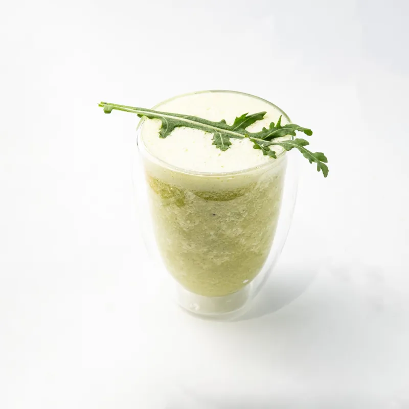 Рукола, листья салата, шпинат, фасоль эдамамэ, слайсы огурца, брокколи, авокадо, тыквенные семечки и семена льна.
