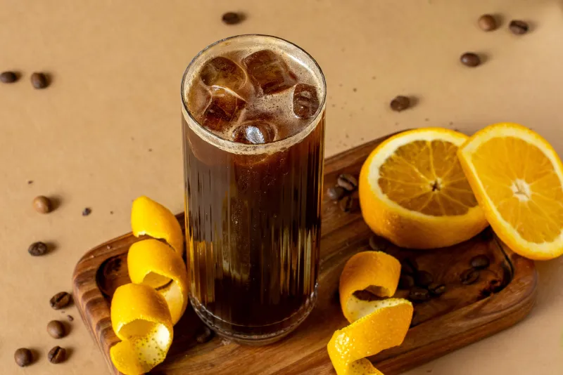 Освежающий кофейный напиток в сочетании эспрессо и тоника с добавлением сахарного сиропа и лайма