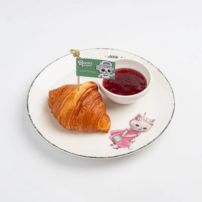 Слоёный на сливочном масле с воздушной и хрустящей корочкой. Подается со сладким джемом