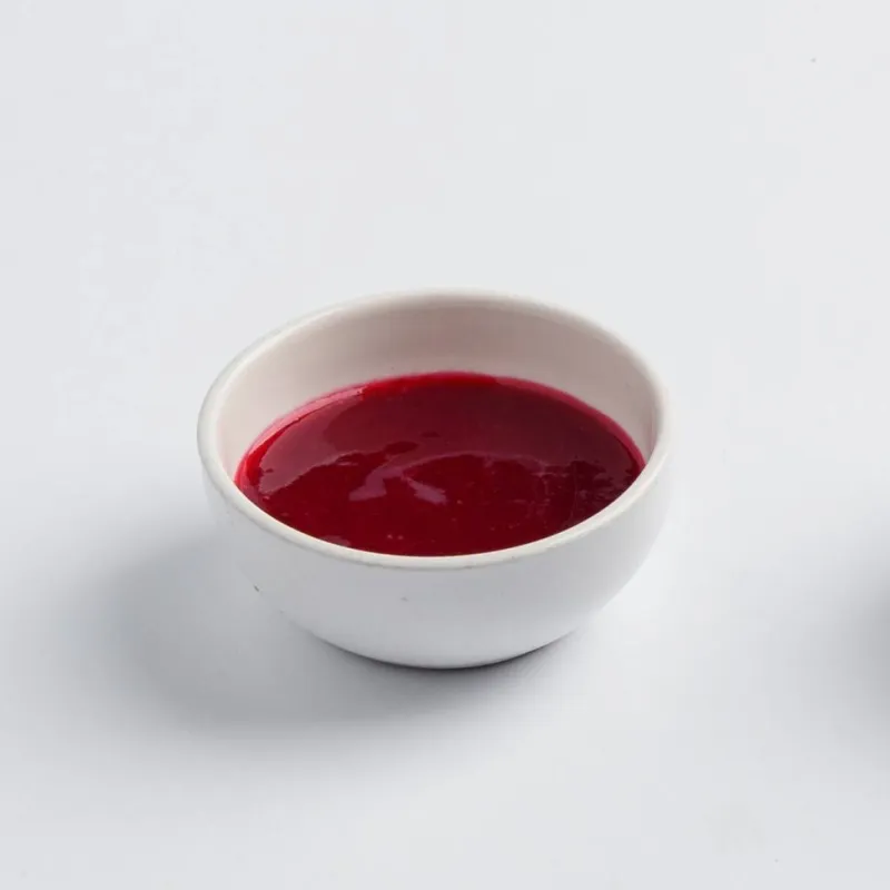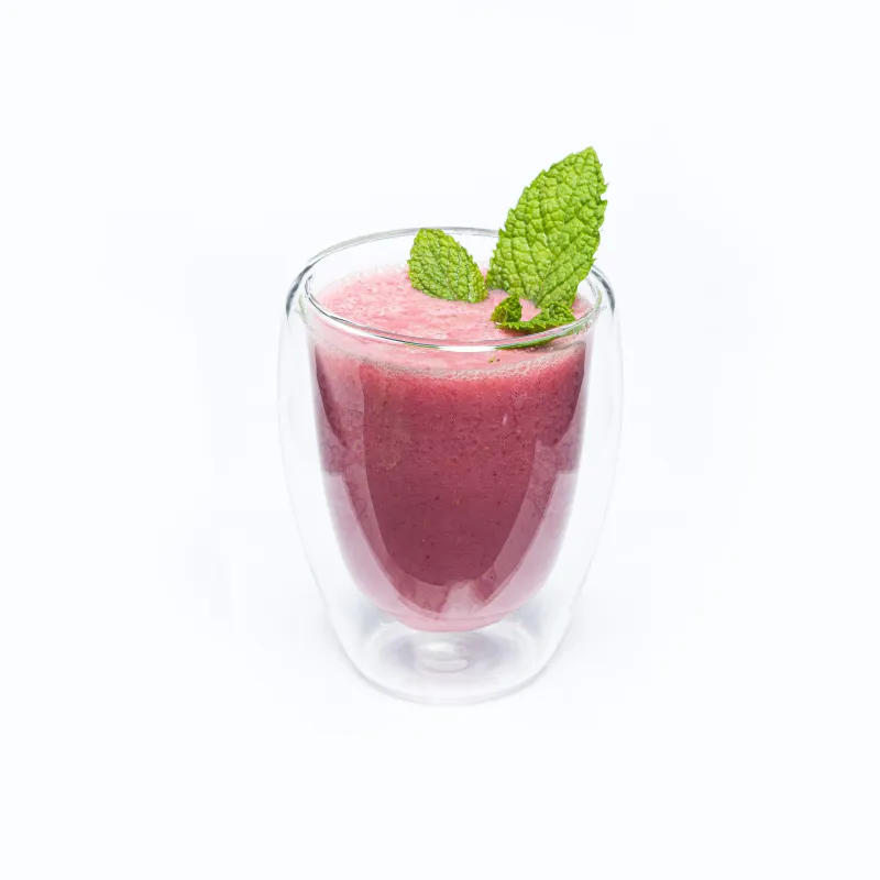 Ягода малины, соевое молоко, грушевый фреш, сироп топинамбура, мята.