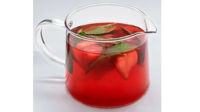 Клубника, мята, сироп клубничный. На основе чёрного чая