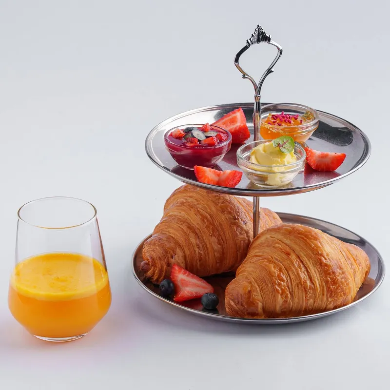 2 круассана, масло сливочное, ягодный Тар-тар, манговый джем, апельсиновый фреш, ягоды