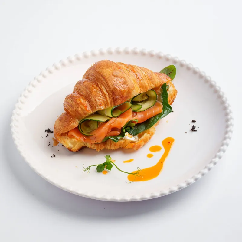 круассан, крем чиз, огурец, шпинат, лосось