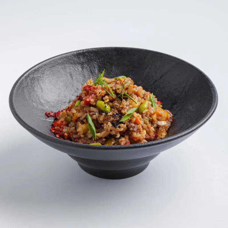 куриное филе, морковь, зеленый лук, болгарский перец, яйцо, чеснок, соевый соус, соус терияки.