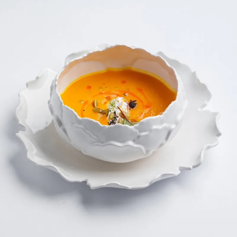 суп из тыквы, крем чиз, семечки тыквы и злаковый хлеб