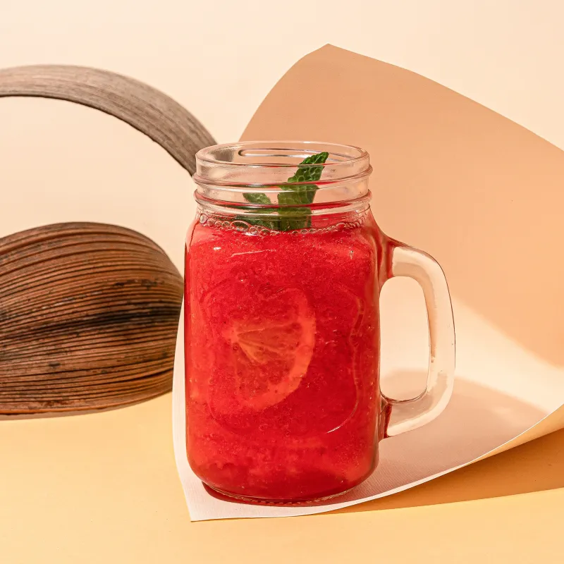 Апельсин, лимон, холодный чай с каркаде. На основе чая каркаде, мяты, сахара и сиропов: малина, клубника, маракуйя, апельсин.