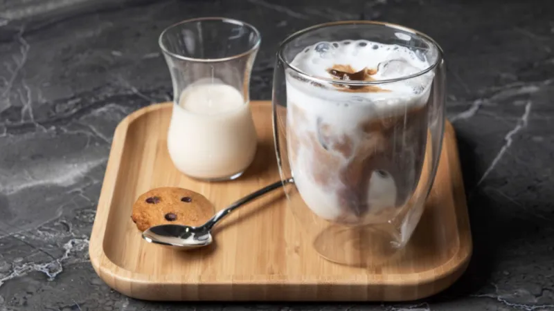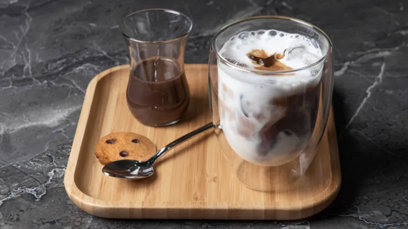 Молоко, сливки, двойной эспрессо, шоколад и печенье