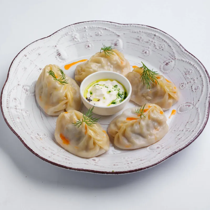 манты с говядиной, подаются со сметаной