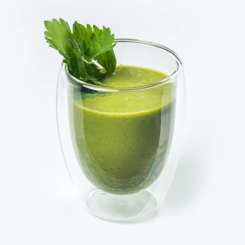 Шпинат, листья сельдерея, яблочный фреш, сироп топинамбура.