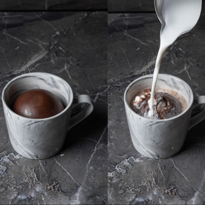 Шоколадная сфера с маршмеллоу и молоком