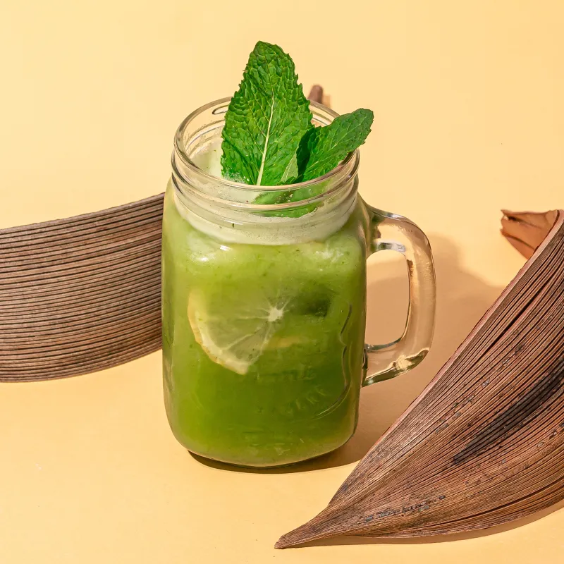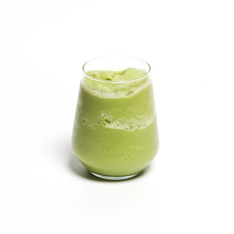 Чай матча, авокадо, листья сельдерея, яблочный и лимонный фреш, сироп топинамбура.