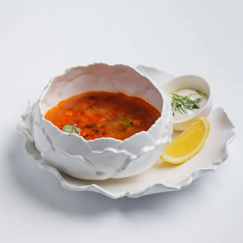 классический суп, сметана, лимон, солодовый хлеб