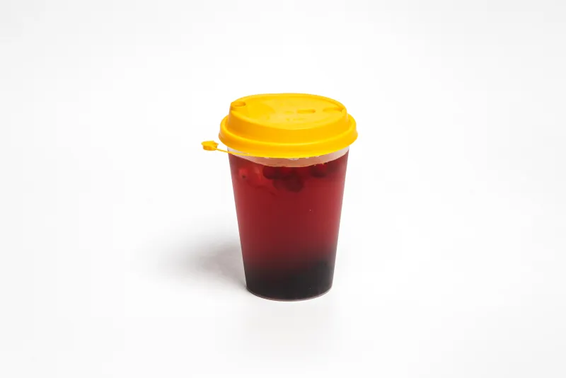 Ягоды клюквы, сироп малина, жасминовый чай. Подается со льдом.