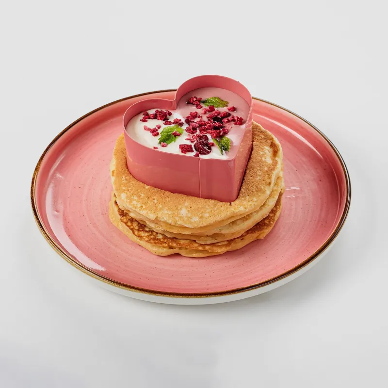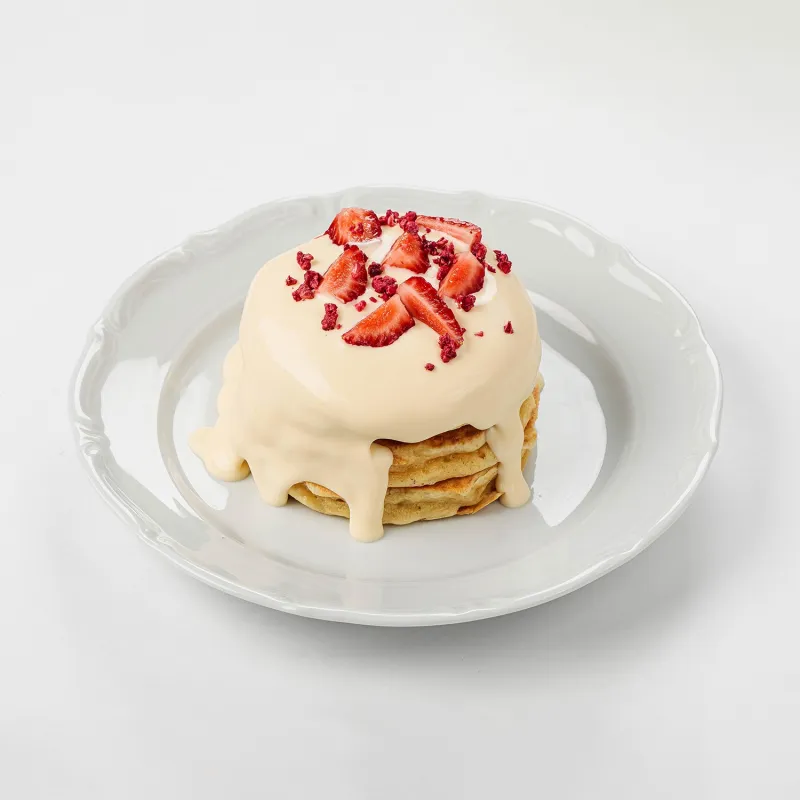 Воздушные панкейки со сливочно-клубничным соусом, свежая ягода